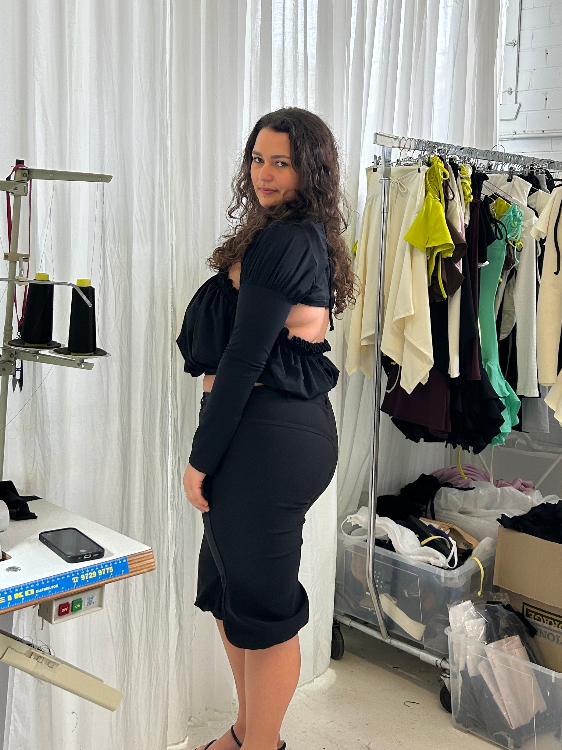 80% nylon 20% elastane lycra. Made in Italy, sourced in Australia.